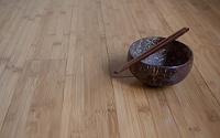 Parkiet z drewna bambusa – wytrzymały i twardy, o kolorze beżowym i karmelowym.